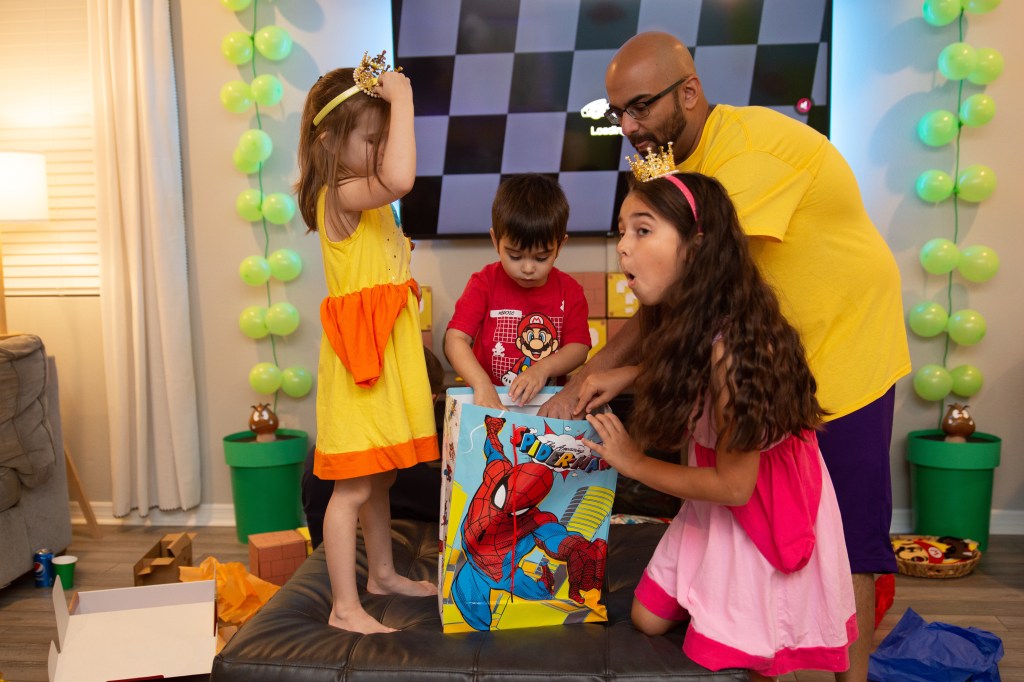 We finished up gifts shortly after 8:00, and at this point some of the guests needed to head out. Of course I totally forgot to hand those couple guests their Piranha plant and NES chocolate controller favors! So I’ve got them set aside for next time I see them.